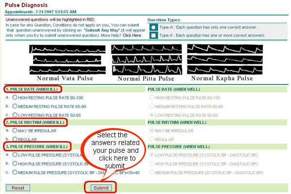 This screen shows the Pulse Diagnosis.Pulse Diagnosis are (When ill and When well)